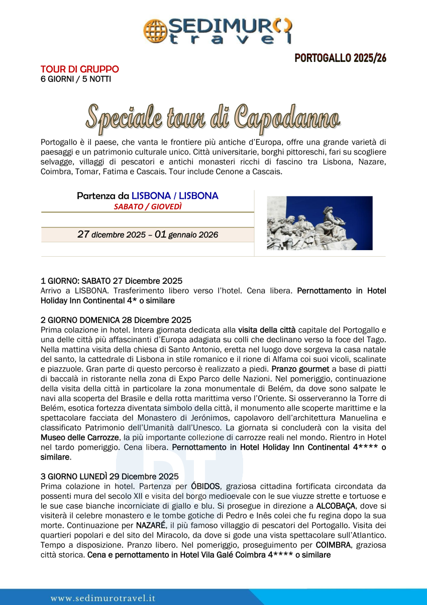 Portogallo, speciale tour di Capodanno da Lisbona 6 giorni