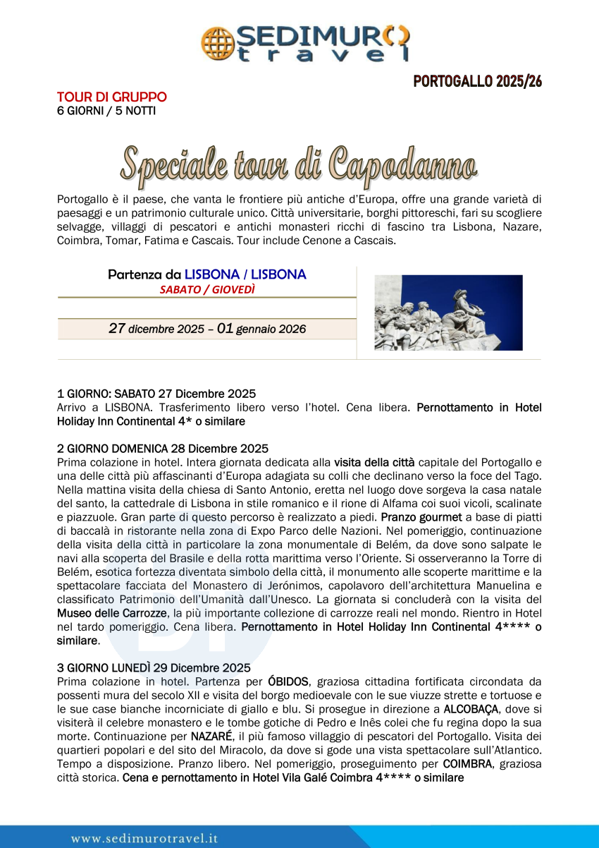 Portogallo, speciale tour di Capodanno da Lisbona 6 giorni