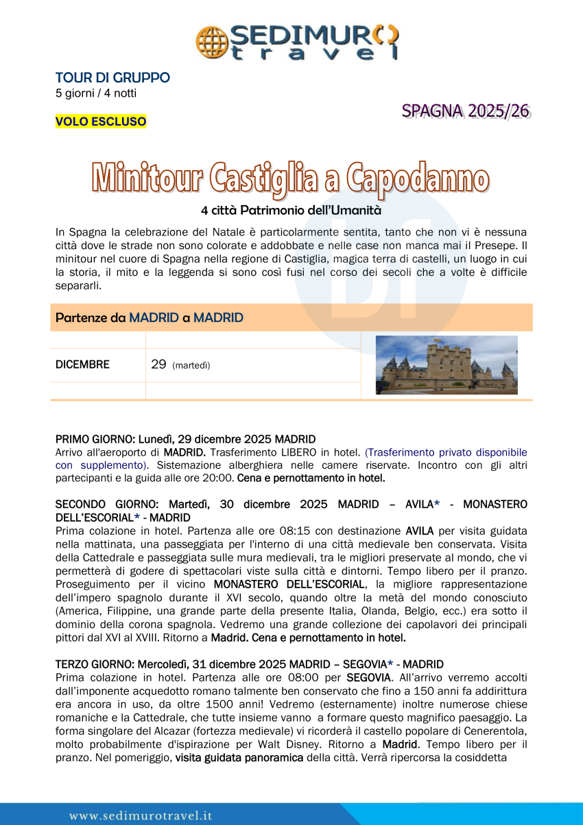 Minitour Castiglia a Capodanno da Madrid 5 giorni