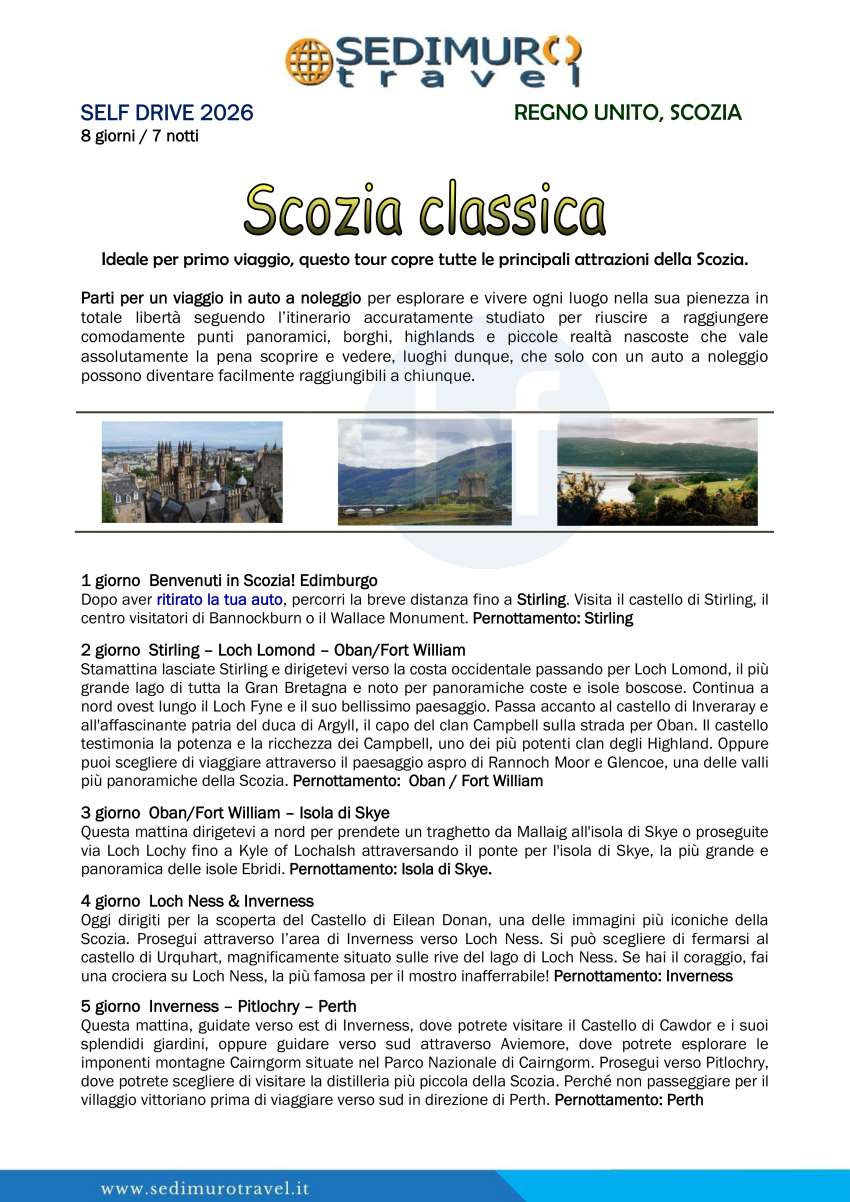 Scozia classica da Edimburgo in auto a noleggio 8 giorni