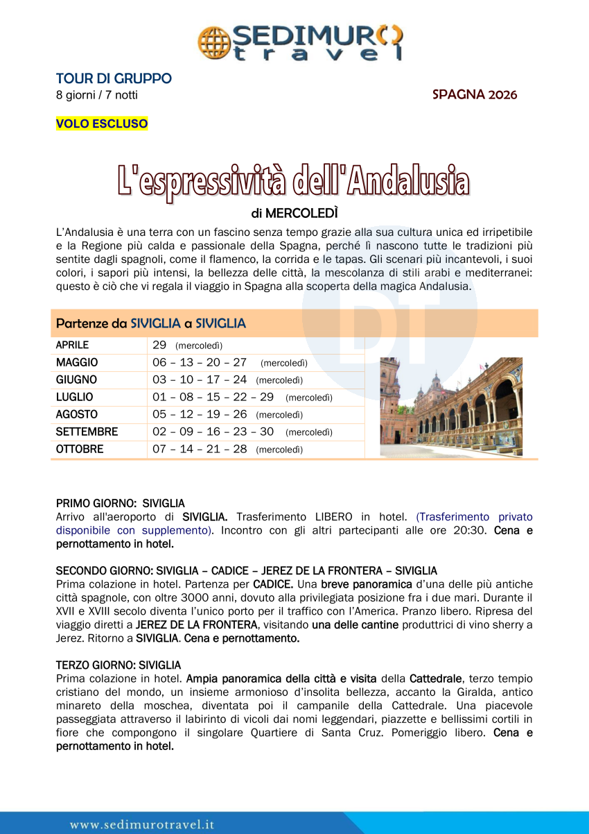 L’espressività dell’Andalusia di mercoledì da Siviglia 8 giorni