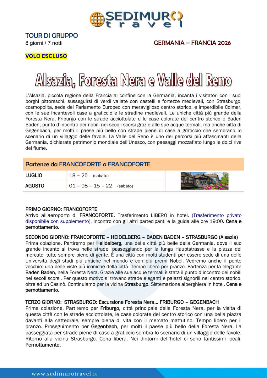 Alsazia, Foresta Nera e Valle del Reno da Francoforte 8 giorni