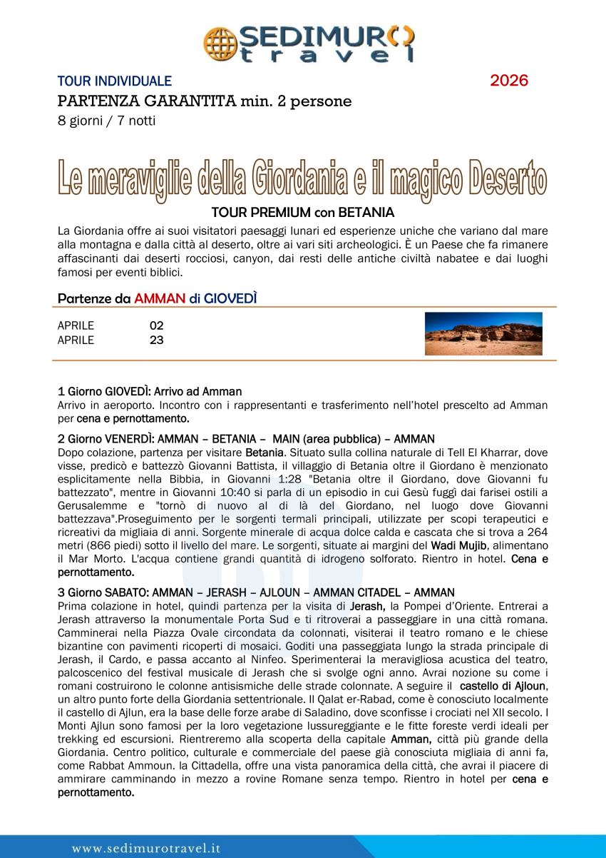 Le meraviglie della Giordania e il magico Deserto Tour Premium di giovedì da Amman 8 giorni