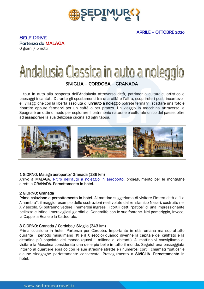 Andalusia classica in auto a noleggio da Malaga 6 giorni