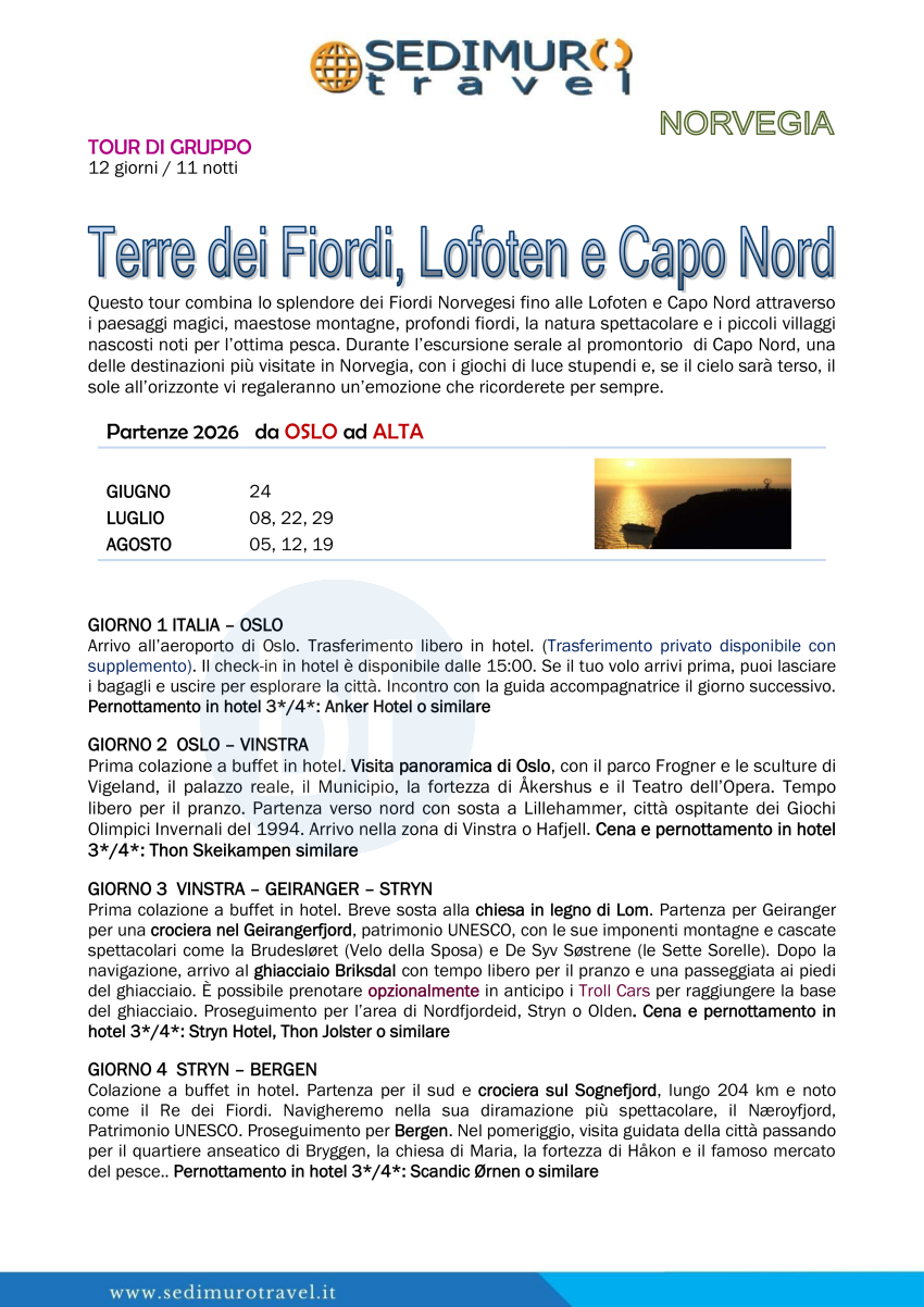 Terre dei Fiordi, Lofoten e Capo Nord da Oslo ad Alta 12 giorni