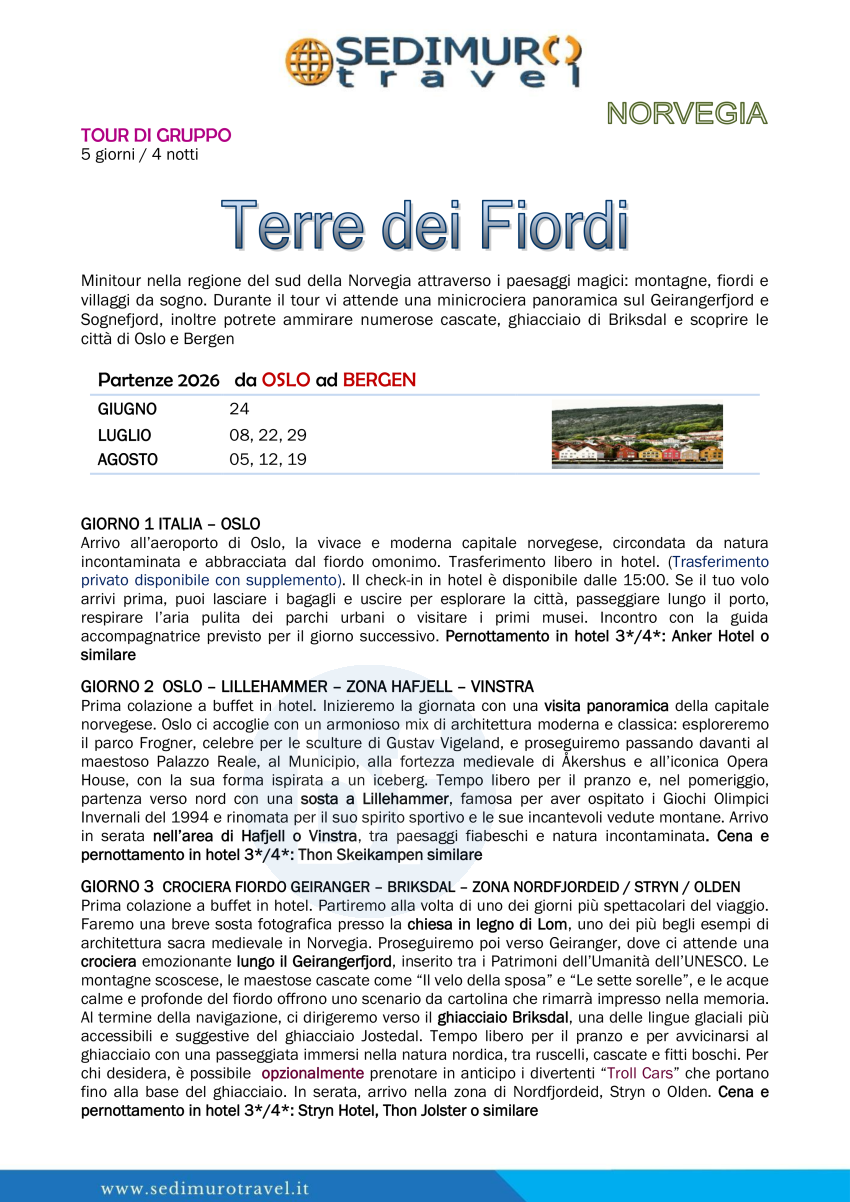Terre dei Fiordi da Oslo a Bergen 5 giorni