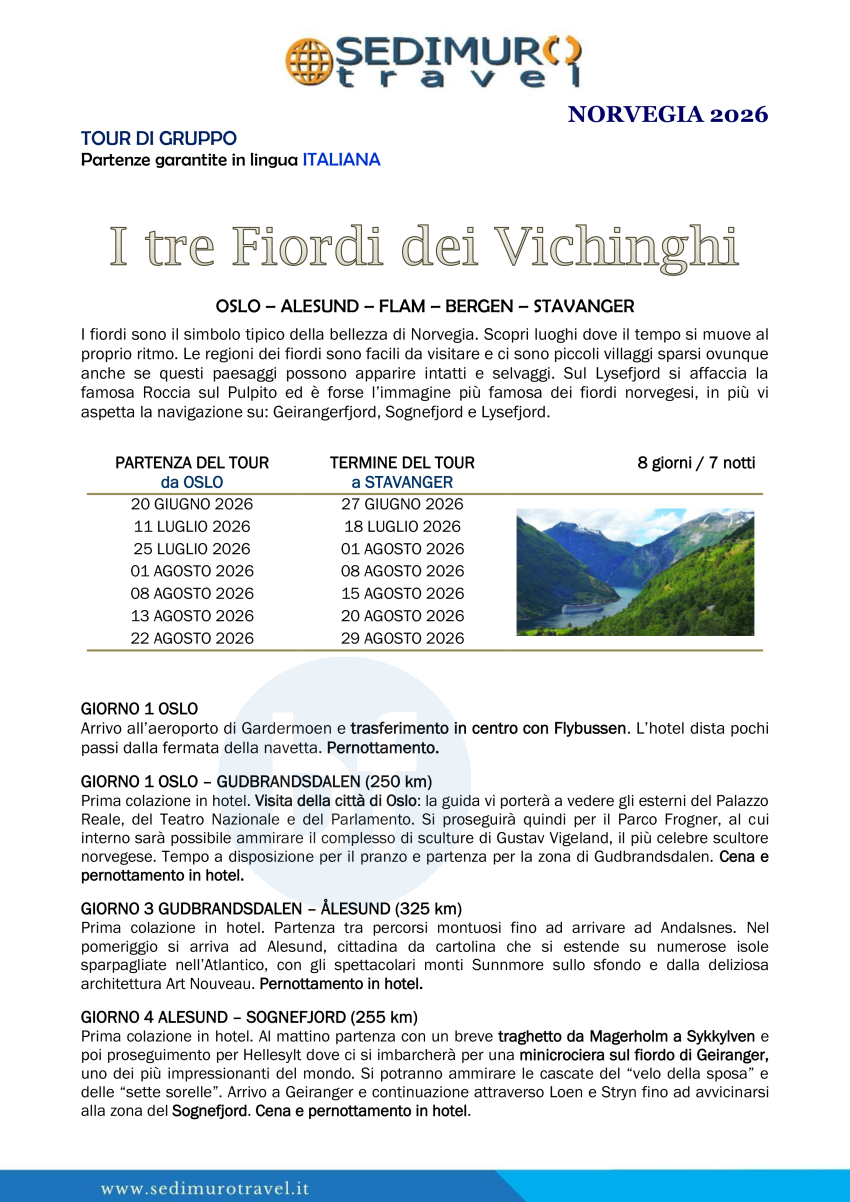 I tre Fiordi dei Vichinghi da Oslo a Stavanger 8 giorni
